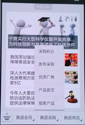 2、我是采購 菜單功能有:搜索產(chǎn)品、產(chǎn)品首頁、優(yōu)質(zhì)供應(yīng)商、發(fā)布求購、采購積分
